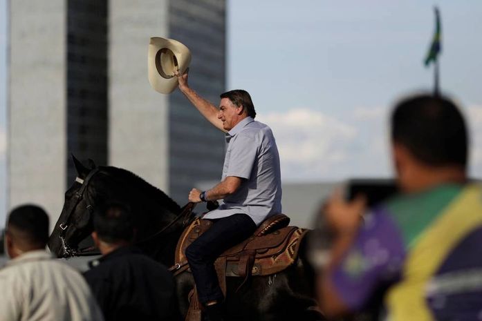 Em Brasília, o espetáculo triste se repetiu: Bolsonaro, um quadrúpede inigualável, montou sobre outro animal de quatro patas, um cavalo, e saiu em sua pregação de arruaceiro contra as instituições e os valores da democracia (foto). Foi seguido pela escória de seu ministério, de Braga Netto a Ricardo Salles, passando por Tereza Cristina. As cenas são patéticas, um troço meio farsesco. De tão repetido, o espetáculo já nem causa espanto.