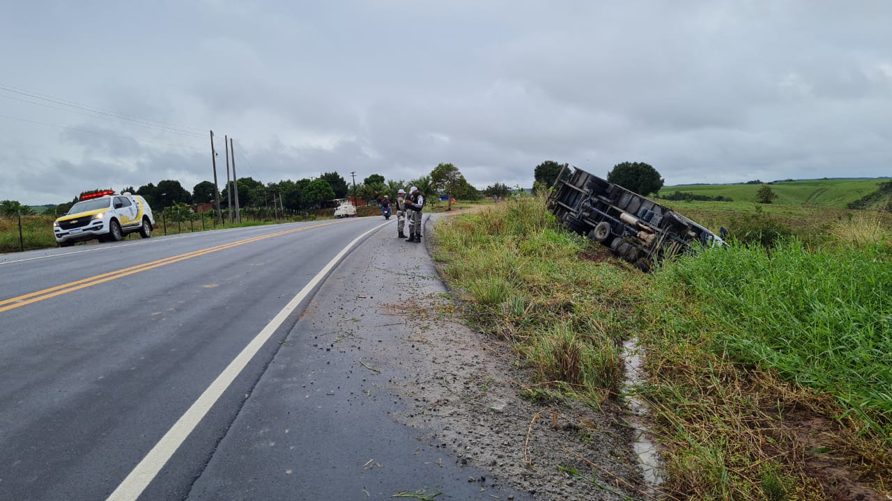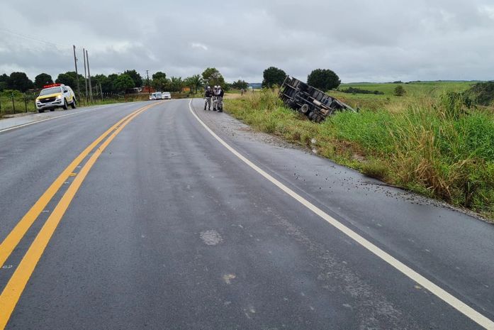 Ainda segundo o BPRv, o caminhão saiu da pista e tombou às margens da rodovia. O motorista não sofreu ferimentos e acionou o serviço de um guincho para retirar o veículo do local.