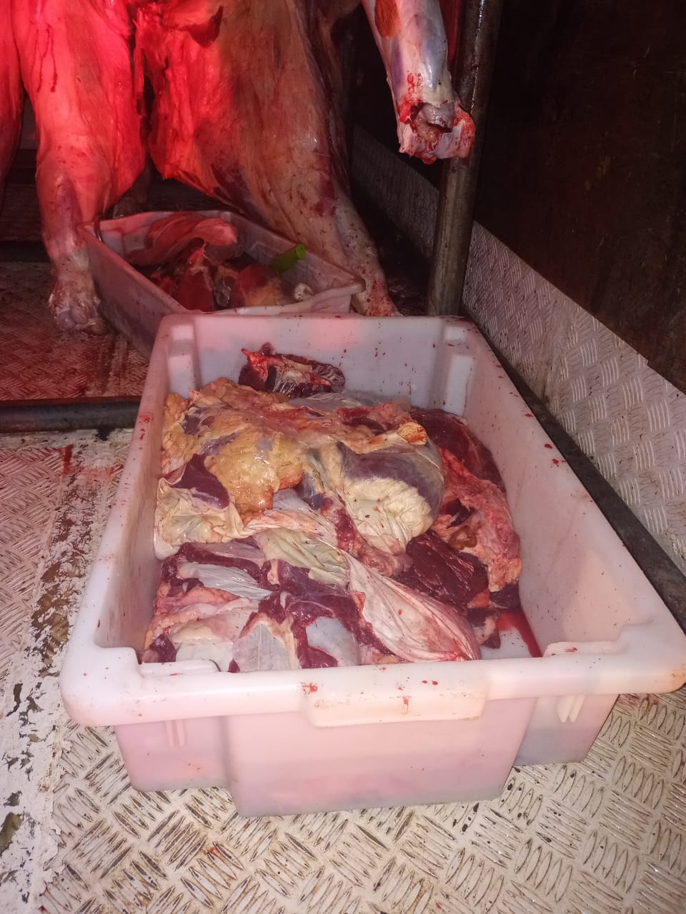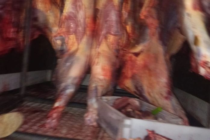 Quando o baú do veículo foi aberto, os militares se depararam com diversos quilos de carne bovina sendo transportada sem refrigeração. A mercadoria seria comercializada no interior no estado.