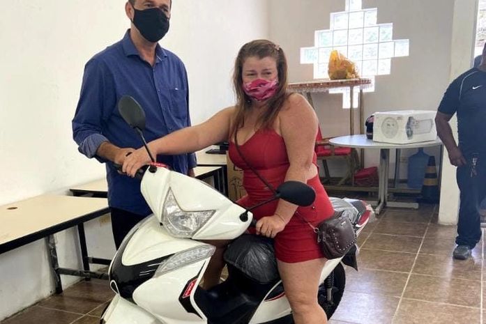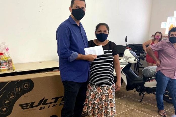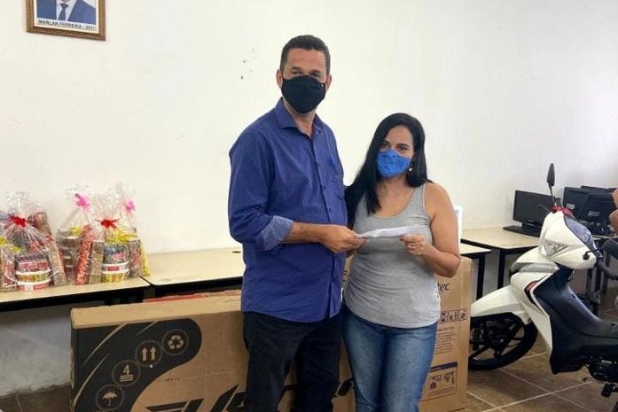 A ganhadora da motocicleta, presente doado pela deputada Jó Pereira, foi a dona de casa Maria José dos Santos Silva, moradora do Povoado Pé Leve, que recebeu as chaves do veículo das mãos do prefeito Marlan.