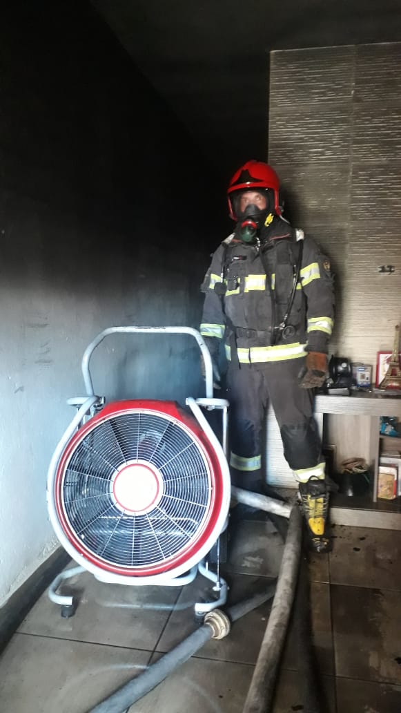 Como não havia janelas no local, os bombeiros precisaram utilizar um equipamento específico – turbo ventilador – para retirar a fumaça depois de apagarem o fogo.