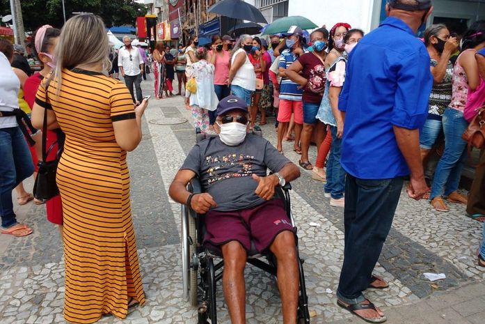 “Deveriam abrir mais cedo e colocar mais funcionários para trabalhar. Lá dentro tem um ou dois para atender todo mundo que aguarda fora do Banco, correndo risco real de ser contaminado pela Covid-19”, declarou o aposentado Francisco Ferreira.