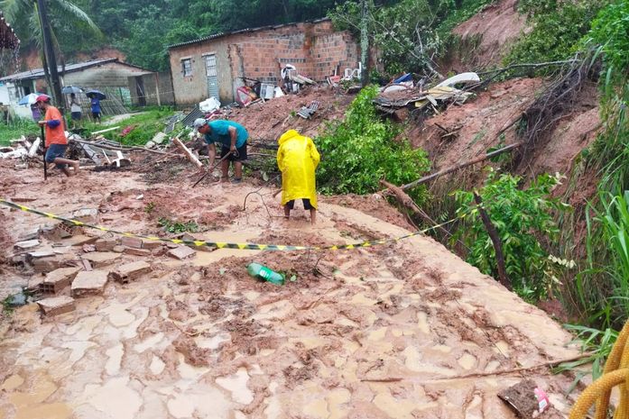 O corpo de um bebê de 10 meses, que desapareceu após um deslizamento de barreira na Grota Santa Helena, no bairro da Chã da Jaqueira, parte alta de Maceió.