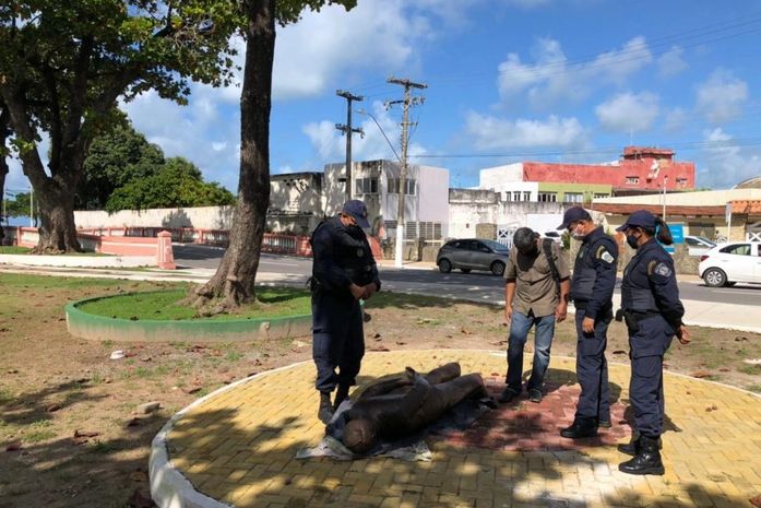 A estátua foi removida pelas equipes das Semscs e levada à sede Superintendência Municipal de Desenvolvimento Sustentável (Sudes), no bairro do Jaraguá.