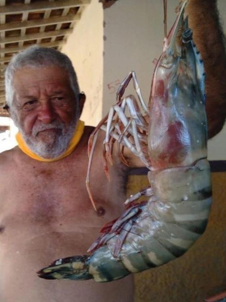 Um camarão "gigante", de 50cm e 400g, foi capturado por um pescador no município de Tibau, no Rio Grande do Norte. Gabriel Silva, de 80 anos, publicou uma foto do crustáceo nas redes sociais e logo se tornou atração.