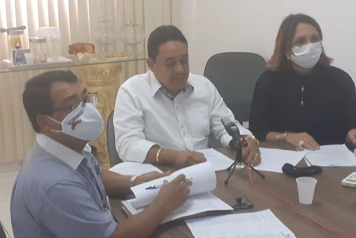 O presidente do Conselho de Secretarias Municipais de Saúde de Alagoas (Cosems/AL) Rodrigo Buarque, equipe técnica da entidade e gestores municipais de Saúde participaram hoje da reunião online da Associação dos Municípios Alagoanos (AMA) para tratar da conjuntura atual da Covid-19 e discutir estratégias de distribuição das 141.910 novas doses de vacinas que chegaram a Alagoas no último fim de semana.