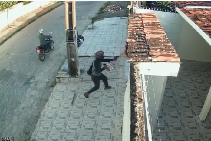 Imagens de câmeras de seguranças, divulgadas pela Polícia Civil, mostram um assalto a uma mulher ocorrido na manhã desta terça-feira (6), em frente a uma residência no Conjunto Osman Loureiro, no bairro do Clima Bom, parte alta de Maceió.