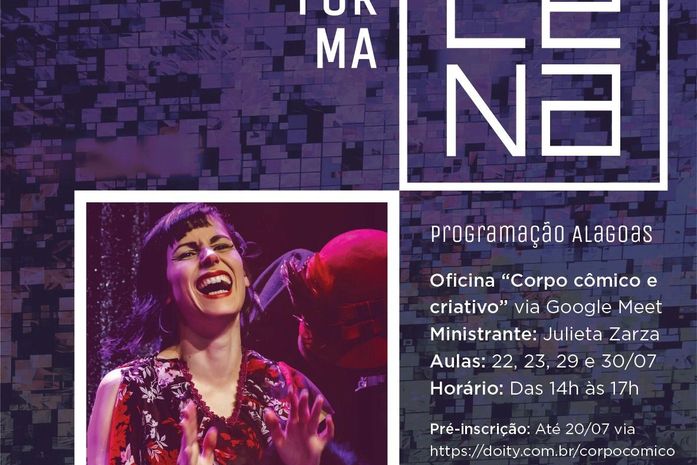 Está aberto o período de pré-inscrições para a oficina gratuita “Corpo cômico e criativo”. A atividade integra a programação da primeira edição do Projeto Plataforma Cena, uma iniciativa do Sesc que será realizada em diversas regiões do País. Ao todo, estão sendo disponibilizadas 10 vagas para a oficina, que ocorrerá remotamente, por meio da plataforma Google Meet, nos dias 22, 23, 29 e 30 de julho, das 14h às 17h.