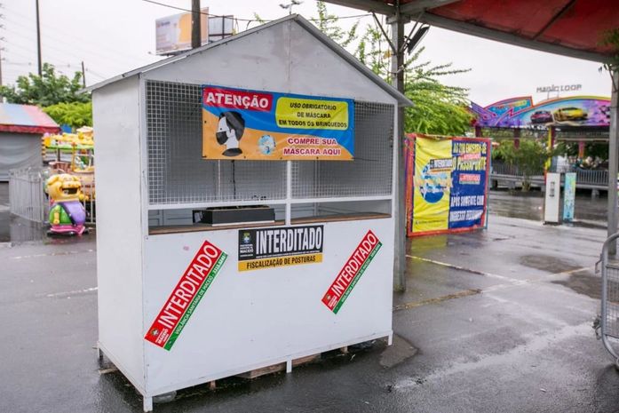 Além de interditado, o parque de diversões teve a autorização de funcionamento cassada pelo prazo de 30 dias. O espaço também será multado pela Vigilância Sanitária por descumprimento ao decreto estadual, com valor que pode variar de R$ 180 a R$ 19 mil.
