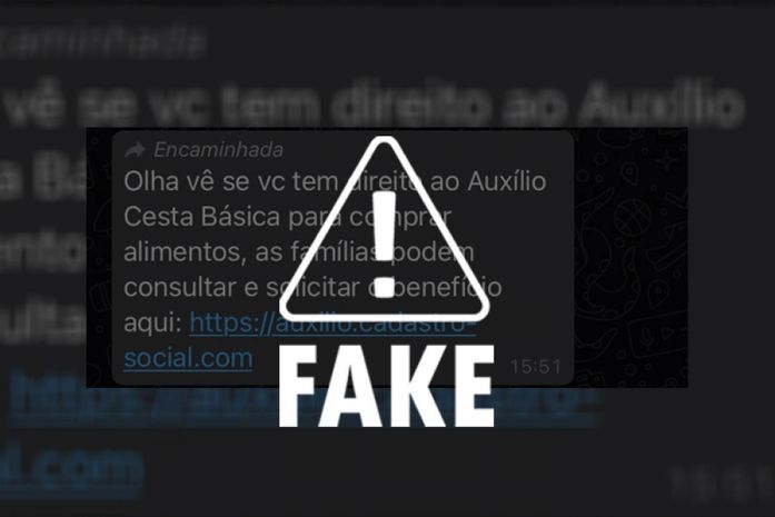 De acordo com as informações, a mensagem apresenta um link, mas a página não está mais no ar. Apesar disso, o conteúdo viralizou pelas redes sociais. “Olha vê se vc tem direito ao Auxílio Cesta Básica para comprar alimentos, as famílias podem consultar e solicitar o benefício aqui (sic)”, diz o texto com o endereço do site.