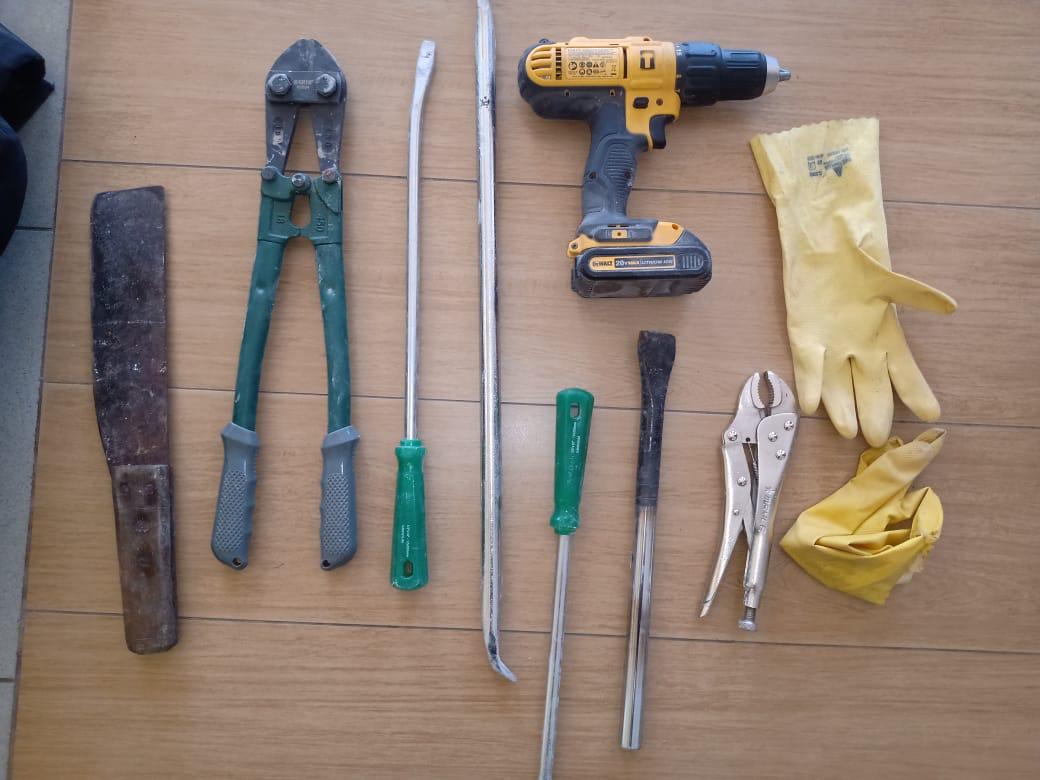 Foram realizadas buscas na região até que um carro foi interceptado no km 83 da BR 101, em Jaboatão dos Guararapes, e outro no km 44 da mesma rodovia, em Igarassu, com dois homens em cada um. No segundo veículo foi apreendida uma esmerilhadeira, que pode ser utilizada por criminosos para serrar caixas eletrônicos.