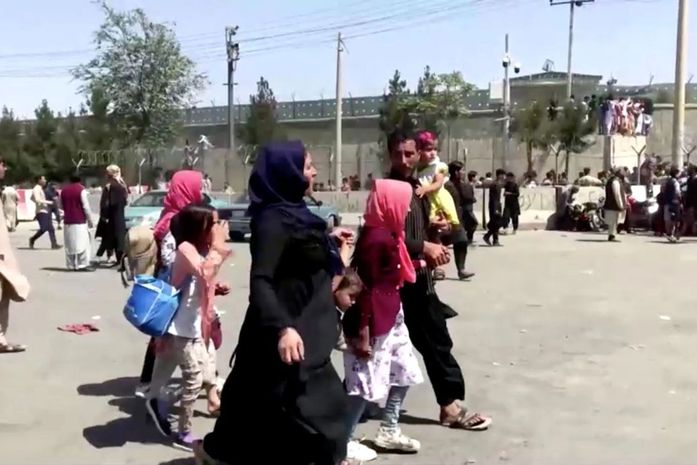 Multidões lotaram o aeroporto tentando escapar, incluindo algumas pessoas que se agarraram a um avião de transporte militar dos EUA que taxiava na pista, de acordo com imagens publicadas por uma empresa de mídia.