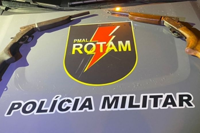 A guarnição pediu autorização para entrar na residência, que foi autorizada, e após buscas pelo imóvel foi encontrado no quintal da casa duas espingardas calibre 28. Os envolvidos e o material apreendido foram levados para a Central de Flagrantes para os procedimentos cabíveis.