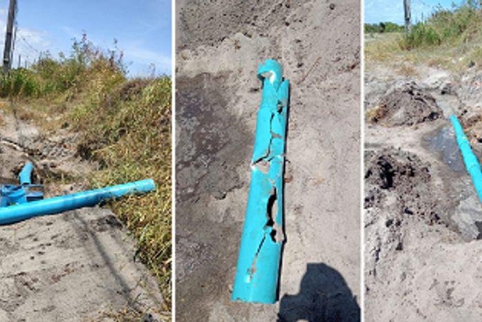 Nas imagens, o morador mostra a rede danificada com grande volume de água limpa jorrando e fala que a situação teria sido provocada por uma pessoa, que teria utilizado um equipamento não identificado para conseguir quebrar a tubulação e interromper o abastecimento no povoado. No local, inclusive, não há obras de outras empresas realizadas recentemente ou em andamento, que poderiam ter ocasionado o incidente.