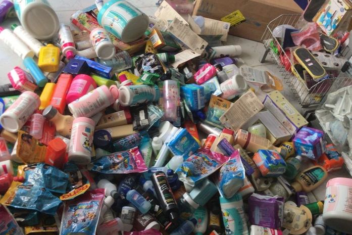 No local foram encontrados diversos produtos expostos para compra, com o prazo de validade vencido, inclusive com alguns itens com data de 2019.