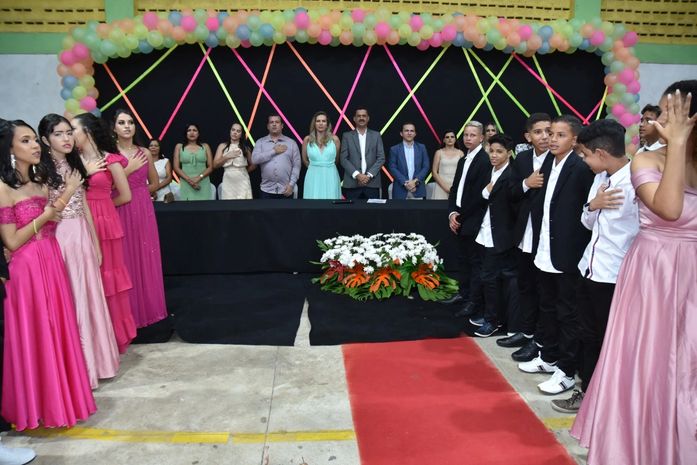 Sábado (18), Marlan Ferreira participou da formatura do 9° Ano da Escola Municipal de Educação Básica Prefeito Benicio Ferreira Reis, ao lado da sua esposa e secretária da Mulher Eloisa Ferreira, do secretário de Educação Antônio Martins, dos professores, pais e alunos.