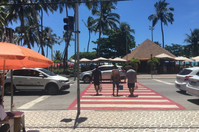 Na beira da praia entre Pajuçara e Jatiúca, onde o tráfego de turistas é intenso pelas vias da orla, a todo instante carros param para o pedestre usar a faixa. Ainda assim, tem sempre um pouco de suspense. Já em avenidas de alta velocidade, como a Durval de Góes Monteiro, complica muito mais. Não dá para arriscar. E como não existe nada formal sobre isso, melhor procurar um ponto com semáforo ou uma passarela, quando há alguma por perto.