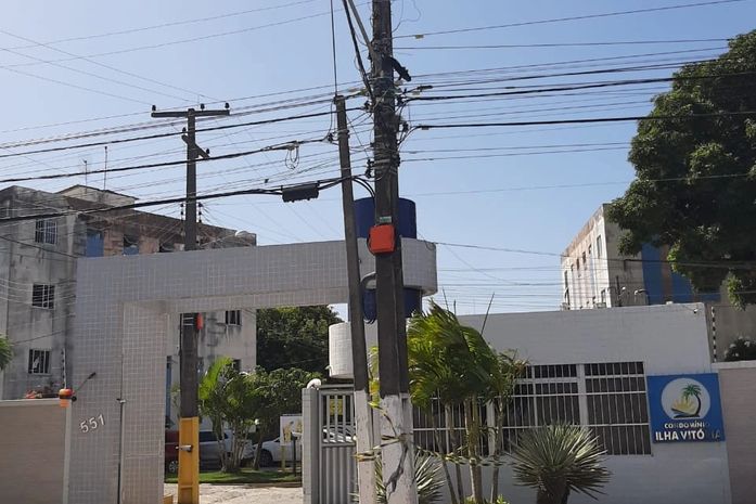 Os próprios colaboradores do condomínio improvisaram um isolamento do poste, enquanto o problema não é resolvido pela empresa responsável, contou a síndica.