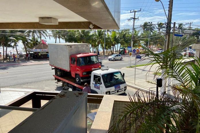 Um caminhão utilizado como baú por comerciantes da orla da Jatiúca está parado na Rua São Francisco de Assis, no mesmo bairro. O veículo está quebrado e foi despejado no local há alguns cerca de 30 dias.