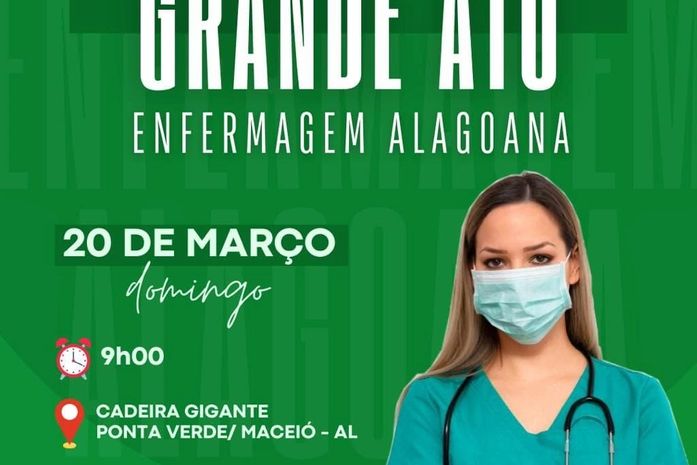 O Instituto da Enfermagem Alagoana (IENFAL) está convocando os profissionais da enfermagem para um grande ato em defesa do piso salarial nacional da categoria. A ação vai acontecer na Cadeira Gigante, localizada na Ponta Verde, neste domingo (20), às 09h.