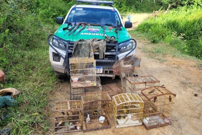 Ainda no decorrer da fiscalização, os militares encontraram as aves dentro de gaiolas penduradas em árvores e marquises de residências e ainda dentro de uma casa. No imóvel, os policiais acharam os outros dois armamentos e apetrechos de caça. Uma pessoa foi presa e levada ao Centro Integrado de Segurança Pública (Cisp) de Novo Lino, onde foram tomadas as medidas cabíveis.