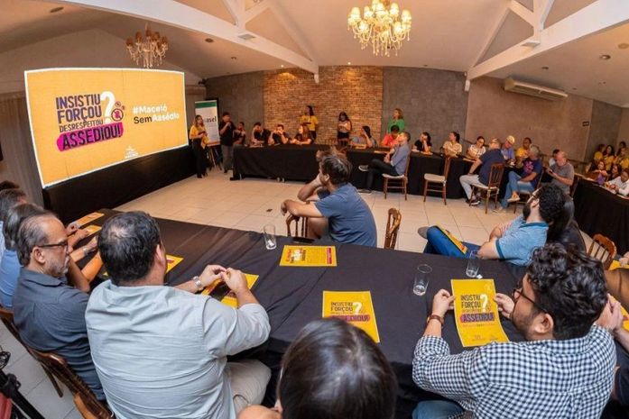 A Prefeitura de Maceió lançou, na tarde desta terça-feira (26), durante encontro com empresários, a campanha "Maceió Sem Assédio", que visa à proteção de mulheres contra qualquer tipo de violência. A iniciativa acompanha um conjunto de medidas para segurança do público feminino em bares, casas de shows, de eventos, casas noturnas, restaurantes e estabelecimentos similares na capital.