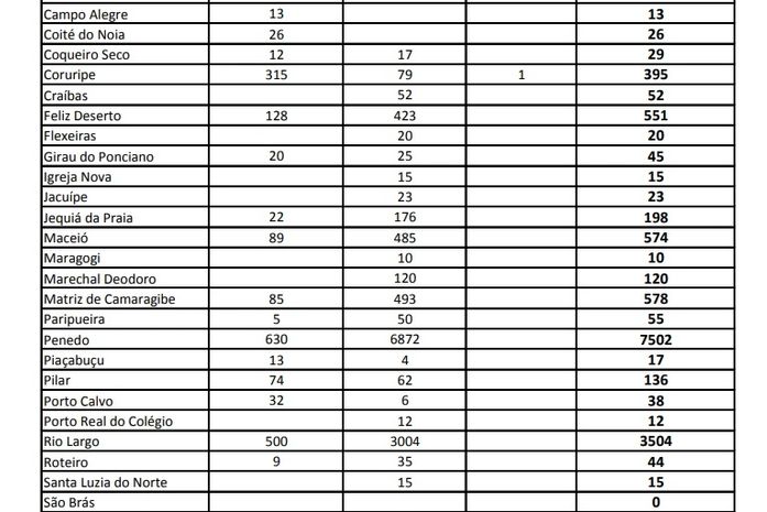 Dois municípios chamam a atenção pelos números divulgados no boletim da Defesa Civil de Alagoas, nesta segunda-feira (30): Rio Largo apresenta 500 pessoas desabrigadas e 3004 desalojadas. Penedo, onde o Rio São Francisco não transbordou, são 630 desabrigados e 6.872 desalojados.