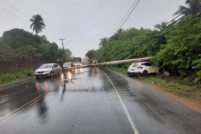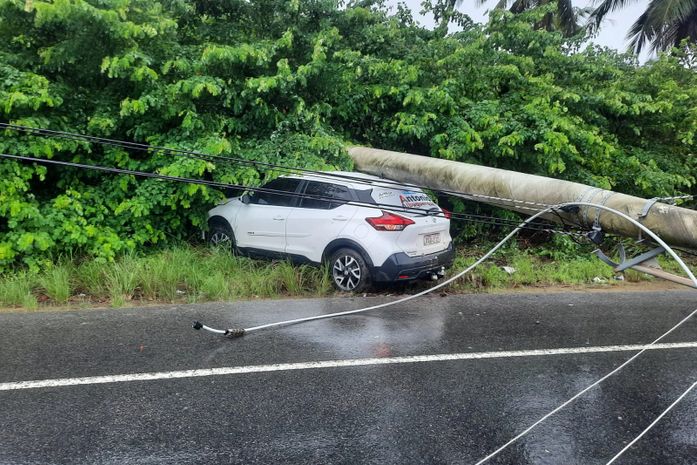 O poste ficou em cima do veículo e, por sorte, o motorista não sofreu ferimento graves. Equipes do Corpo de Bombeiros e da Equatorial foram acionadas para que a vítima, uma mulher de 40 anos pudesse ser retirada do carro.