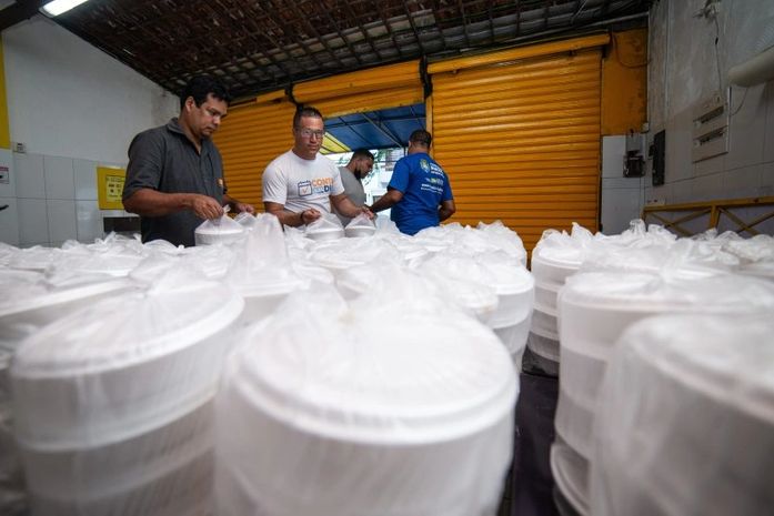 As equipes da Secretaria Municipal de Assistência Social (Semas) começam a logística de receber, transportar e entregar uma boa alimentação aos desabrigados ainda nas primeiras horas da manhã, para assegurar a primeira refeição do dia por volta das 7h. Esse trabalho termina por volta das 20h, quando é entregue a última quentinha do jantar.
