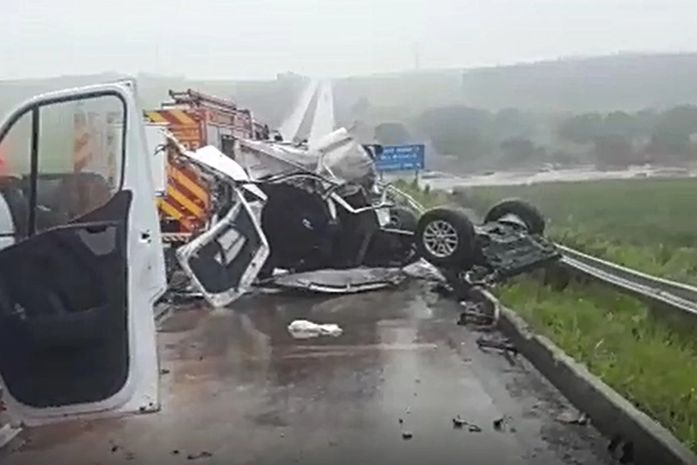 De acordo com a descrição da ocorrência dos Bombeiros, houve uma colisão entre uma caminhonete e a barra de proteção da rodovia, com uma vítima presa às ferragens.