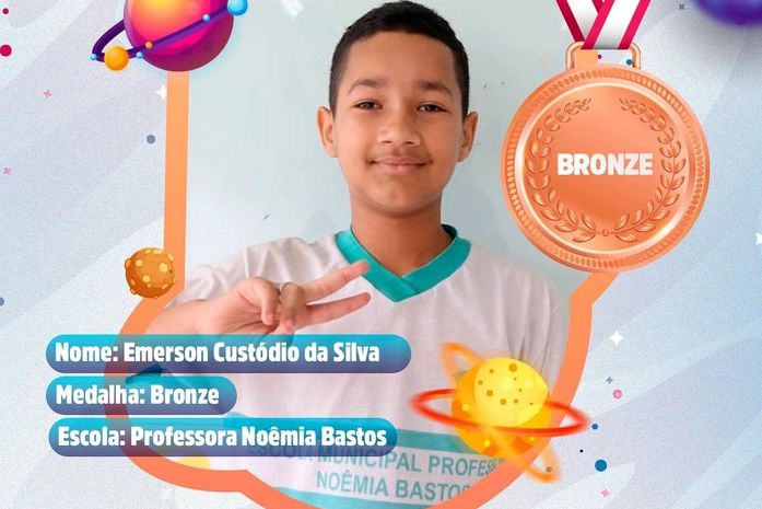 - Émerson Custódio da Silva Santos – Escola Municipal Professora Noêmia Bastos – MEDALHA DE BRONZE