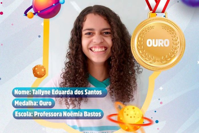 - Tallyne Eduarda dos Santos Santos – Escola Municipal Professora Noêmia Bastos – MEDALHA DE OURO