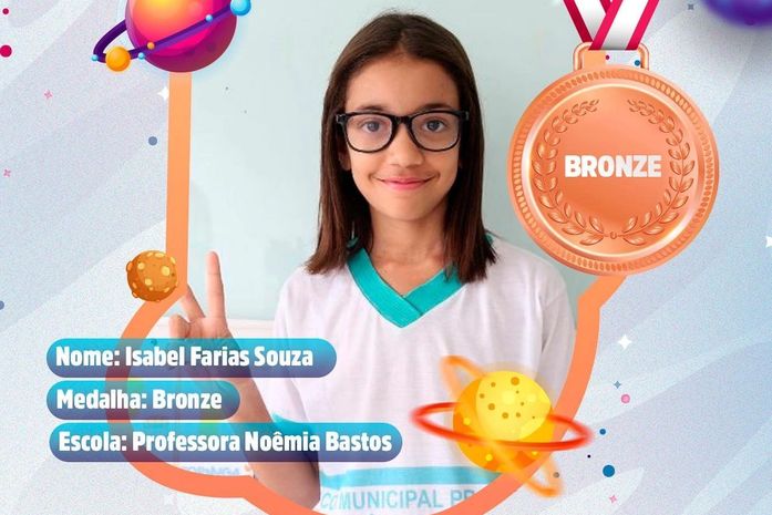 - Izabel Farias Souza - Santos – Escola Municipal Professora Noêmia Bastos – MEDALHA DE BRONZE