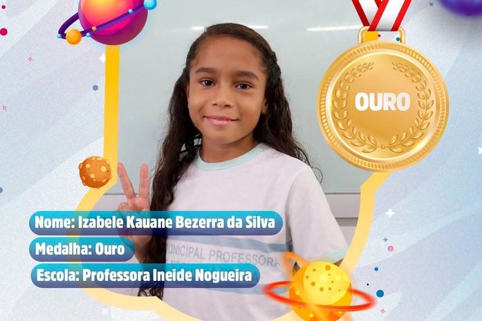 - Izabele Kauane Bezerra da Silva - Santos – Escola Municipal Professora Ineide Nogueira – MEDALHA DE OURO