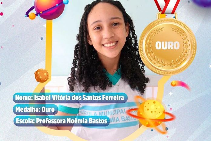 - Izabel Vitória dos Santos Ferreira Santos – Escola Municipal Professora Noêmia Bastos – MEDALHA DE OURO