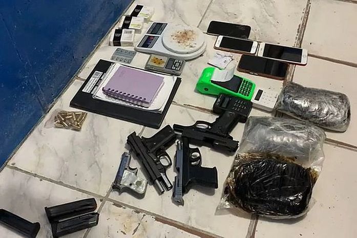 De acordo com as informações, celulares, um caderno de anotações, uma balança de precisão e máquinas de cartão de crédito também foram apreendidos pelos policiais militares que realizaram a prisão