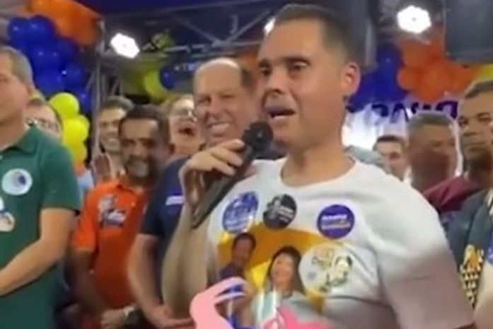 Em vídeo divulgado nas redes sociais, Joãozinho aparece ao microfone e estimula o público presente: "Vou falar baixinho, né? Pergunto: quem vota aqui no outro presidente? No outro, no outro”, disse.