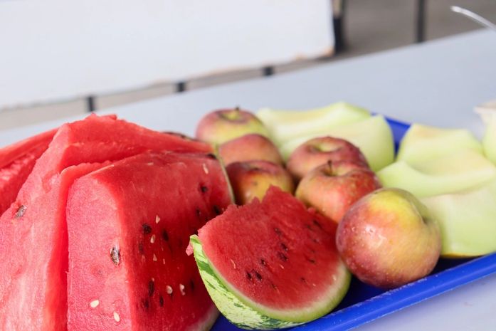 É oferecido no desjejum uma fruta ou algum prato feito com frutas, conforme os critérios do Plano Nacional de Alimentação Escolar (PNAE).