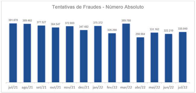 Os brasileiros foram alvo de 335.040 tentativas de fraude apenas em julho. O número representa uma tentativa a cada 8 segundos. O principal alvo dos criminosos foi o segmento de Bancos e Cartões, com 199.276 ações dos golpistas.