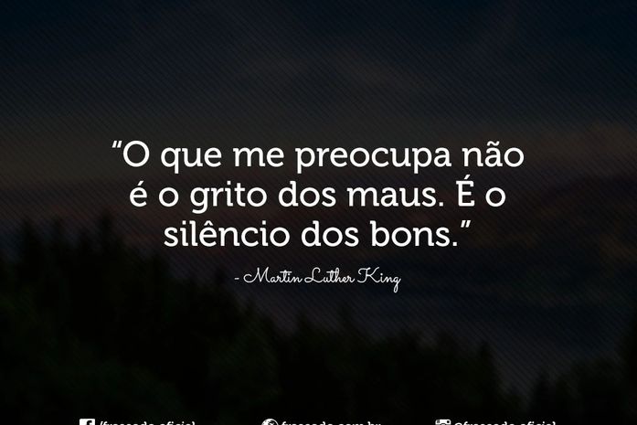 É, também, sobre Martin Luther King :“O que me preocupa não é o grito dos maus, mas o silêncio dos bons”
