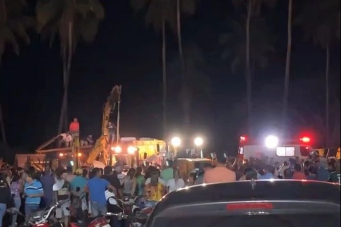 Imagens divulgadas nas redes sociais, mostram a aflição de populares para que o menino fosse resgatado. Um guindaste foi enviado ao local para retirar e segurar a caçamba.