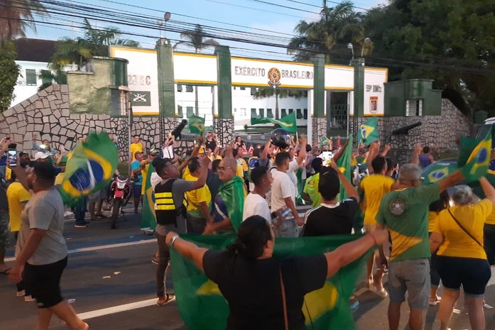 Nesta segunda-feira (31), um grupo de manifestantes favoráveis ao presidente Jair Bolsonaro se reuniu em frente ao Quartel do Exército, do 59º Batalhão de Infantaria Motorizada, na Avenida Fernandes, em Maceió.