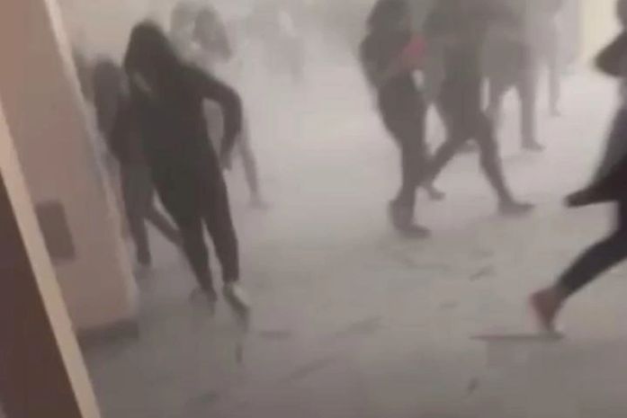 Entretanto, mesmo com todas as orientações e informações passadas em sala e de comunicados enviados às famílias, fomos ignorados em nossas solicitações, por parte dos alunos, e tivemos um momento de extremo desrespeito ao outro, sem empatia com equipe de apoio e com as crianças que não tinham conhecimento do que se tratava. Faltando 15 minutos para o fim do intervalo das 10h, alguns alunos da mencionada série saíram pelos corredores da escola em algazarra, atirando ovos, maisena, água, bexigas de água, acendendo sinalizadores e disparando extintores de incêndio de pó químico nos corredores da escola e dentro de salas de aula.