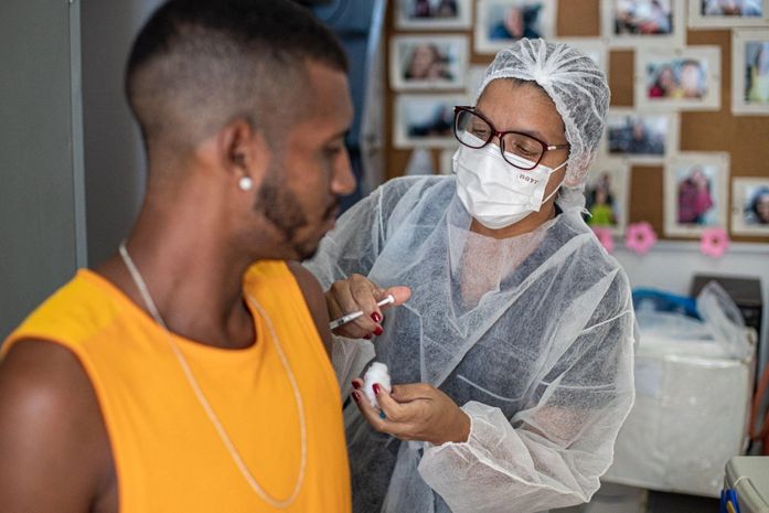 A média nacional de vacinação da população com uma das quatro vacinas disponíveis - Janssen, Coronavac, Pfizer e Astrazeneca - ficou em pouco acima de 78% (dados de outubro de 2022).