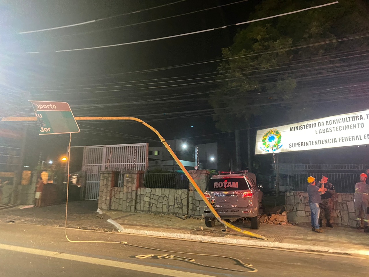 Uma viatura da Polícia Militar colidiu contra o muro do Ministério da Agricultura, na Avenida Fernandes Lima, no bairro do Farol, neste domingo (25).