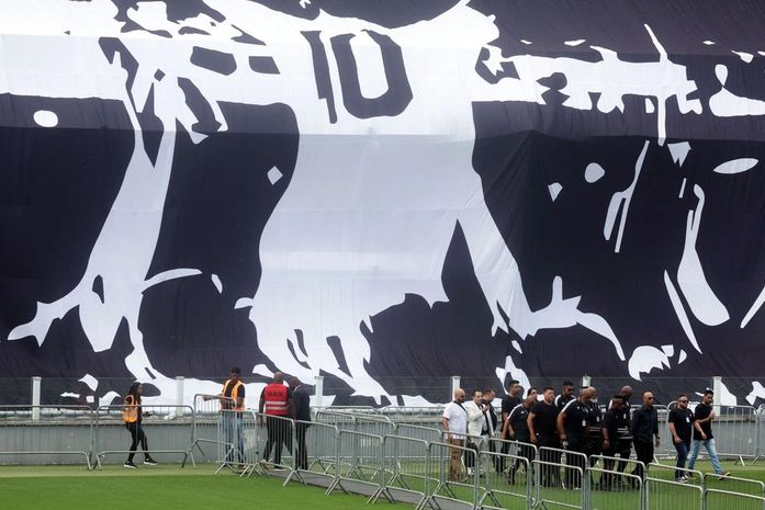 O corpo de Pelé, falecido na última quinta-feira (29), foi transportado do Hospital Israelita Albert Einstein, em São Paulo, à Vila Belmiro durante a madrugada, escoltado pela Polícia Militar e pelo Corpo de Bombeiros, chegando por volta das 3h40. O caixão está no centro do gramado do estádio onde o Atleta do Século atuou em 210 jogos e anotou 288 dos 1.091 gols que fez com a camisa do Peixe. O acesso do público ocorre pelos portões 2 e 3 (Rua Dom Pedro), enquanto o de autoridades se dá pelo portão 10 (Rua Princesa Isabel).