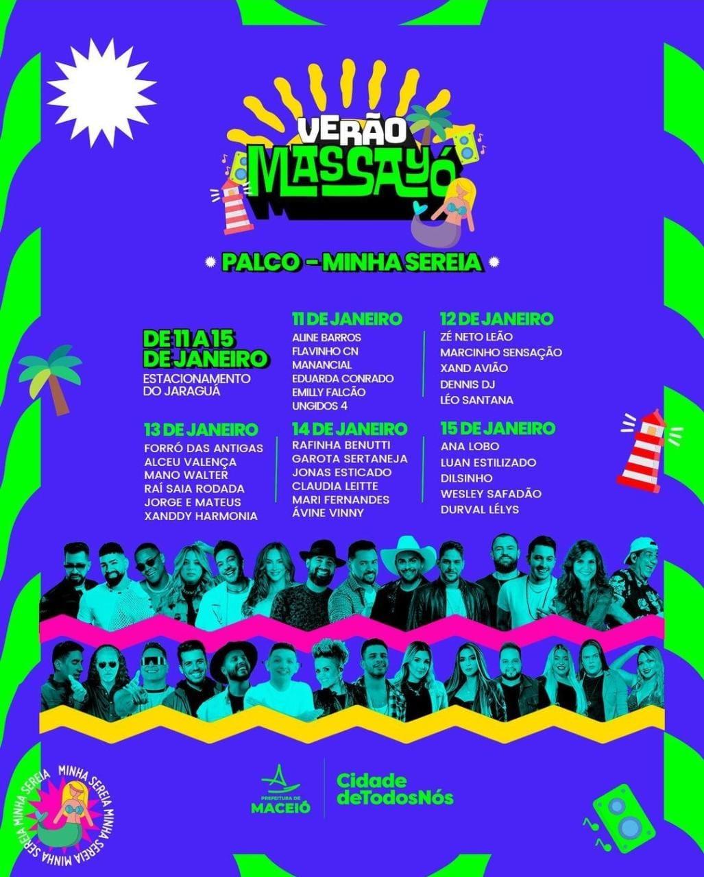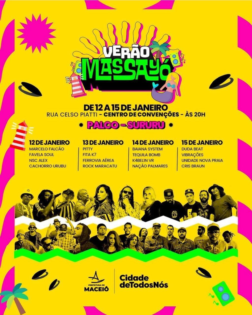 Tem início, nesta quarta-feira (11), o Verão Massayó. O festival conta com uma programação multicultural e extensa, com a proposta de incentivo à economia criativa e a participação de artistas locais e de destaque nacional. Os shows nos palcos Sururu e Minha Sereia serão realizados de 11 a 15 de janeiro, no bairro histórico do Jaraguá.
