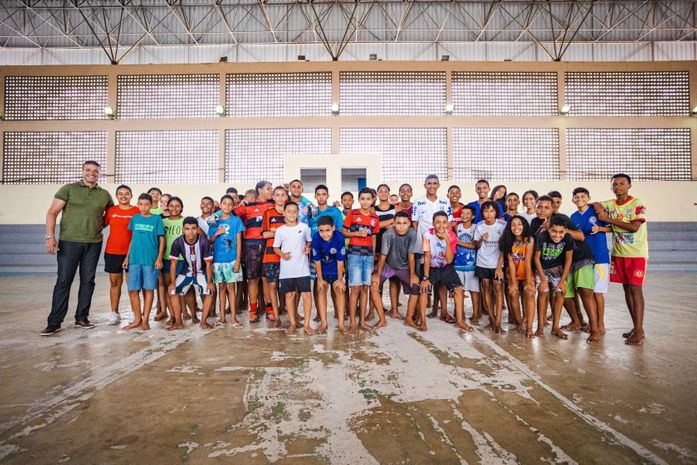 Mais de 30 crianças e adolescentes participaram de atividades do programa, além de voleibol e queimado, no Ginásio Arivaldo Maia. As aulas no equipamento de esporte e lazer acontecem dias de segunda-feira e quarta-feira, das 13h30 às 15h30.