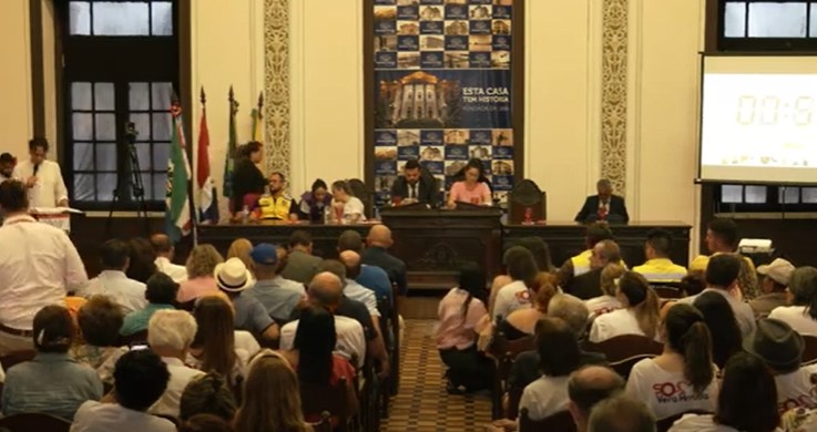 Entre parlamentares, populares e representantes de associação de moradores, a favor e contra a proposta, foi durante a fala de um morador, que defendeu a abertura do corredor que o tumulto começou. Enquanto defendia a proposta, o homem foi vaiado e interrompido. Mesmo pedindo respeito, as vaias e as interrupções continuaram e o líder do governo na Câmara, o vereador Chico Filho, mandou desligar os microfones, a transmissão, pois a audiência estava sendo transmitida ao vivo, e suspendeu a audiência.