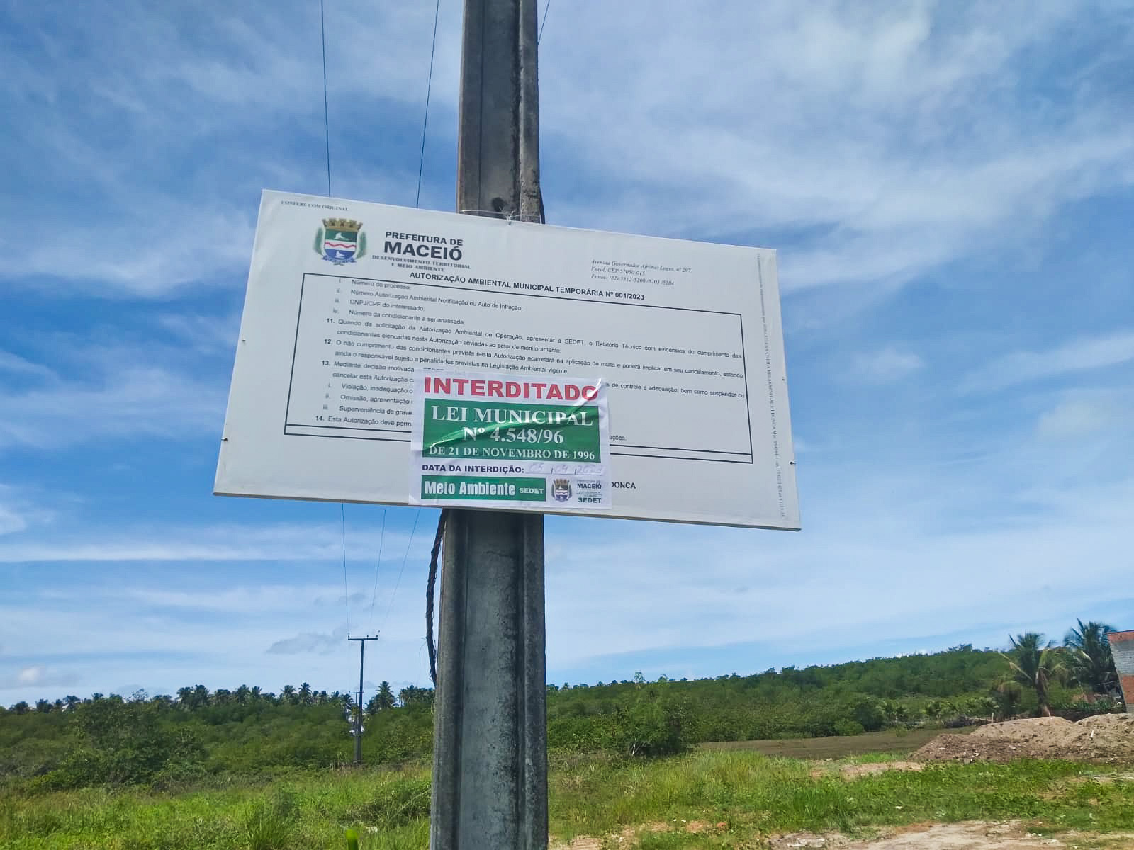 Na tarde desta quarta-feira (5), fiscais da Secretaria Municipal de Desenvolvimento Territorial e Meio Ambiente (Sedet) interditaram um terreno que estava sendo aterrado ilegalmente na região da APA Costa dos Corais, bairro Pescaria. A denúncia foi feita pelo Instituto Biota de Conservação.